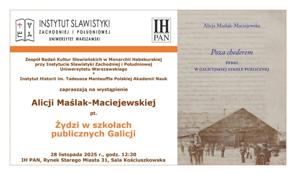 Zespół Badań Kultur Słowiańskich w Monarchii Habsburskiej przy Instytucie Slawistyki Zachodniej i Południowej Uniwersytetu Warszawskiego oraz Instytut Historii im. Tadeusza Manteuffla Polskiej Akademii Nauk zapraszają na wystąpienie Alicji Maślak-Maciejewskiej pt.